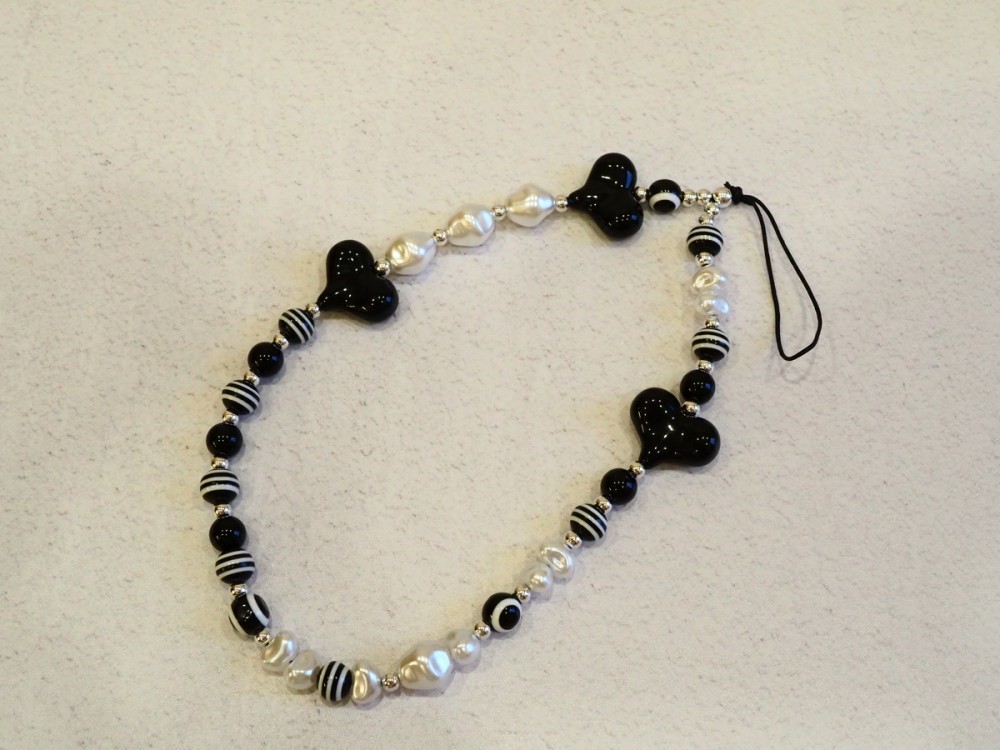 Шнурок для телефона брелок женский украшение браслет на руку (черный полосатый)